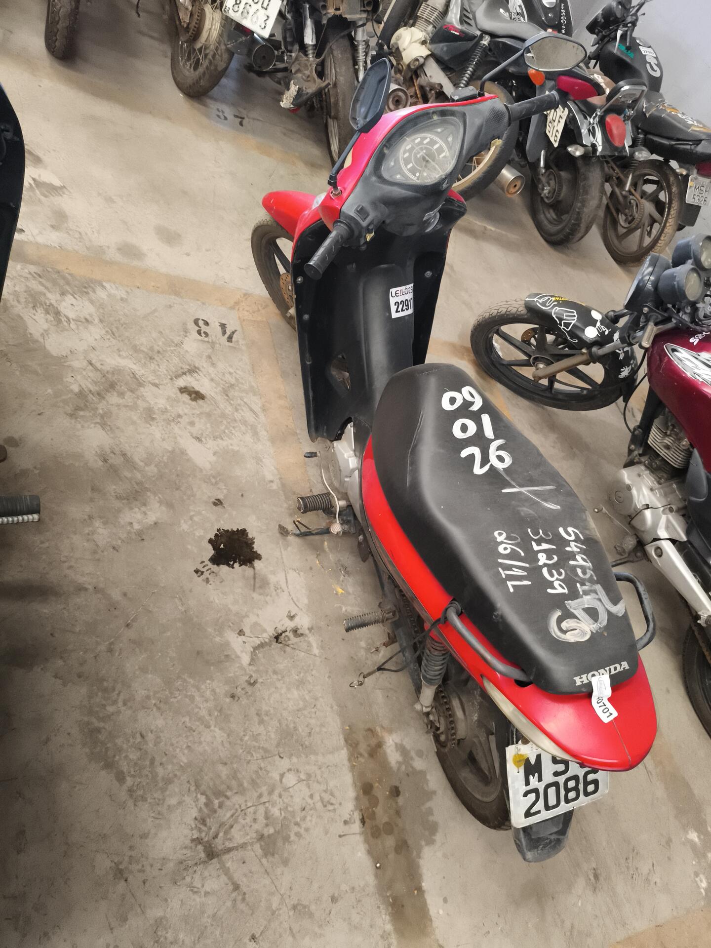 HONDA/BIZ 125 MAIS (Nacional), 2008/2008, VERMELHA, RENAVAM 984385770 CHASSI 9C2JA04308R026779(Normal), n Motor JA04E38026779, COMBUSTIVEL Gasolina, OBS: